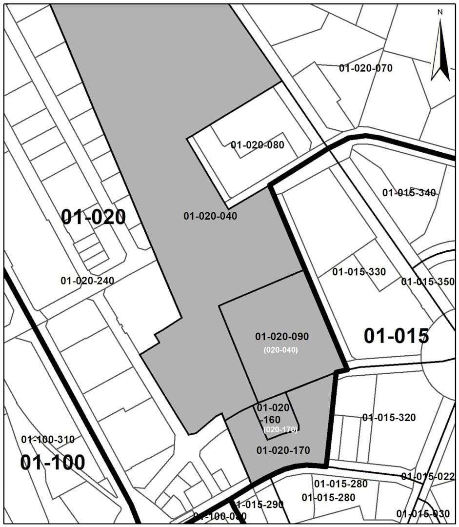 Af kortet kan ses to nye enkeltområder. Enkeltområde 01-020-090 udskilles fra enkeltområde 01-020-040 og enkeltområde 01-020-160 udskilles fra enkeltområde 01-020-170.