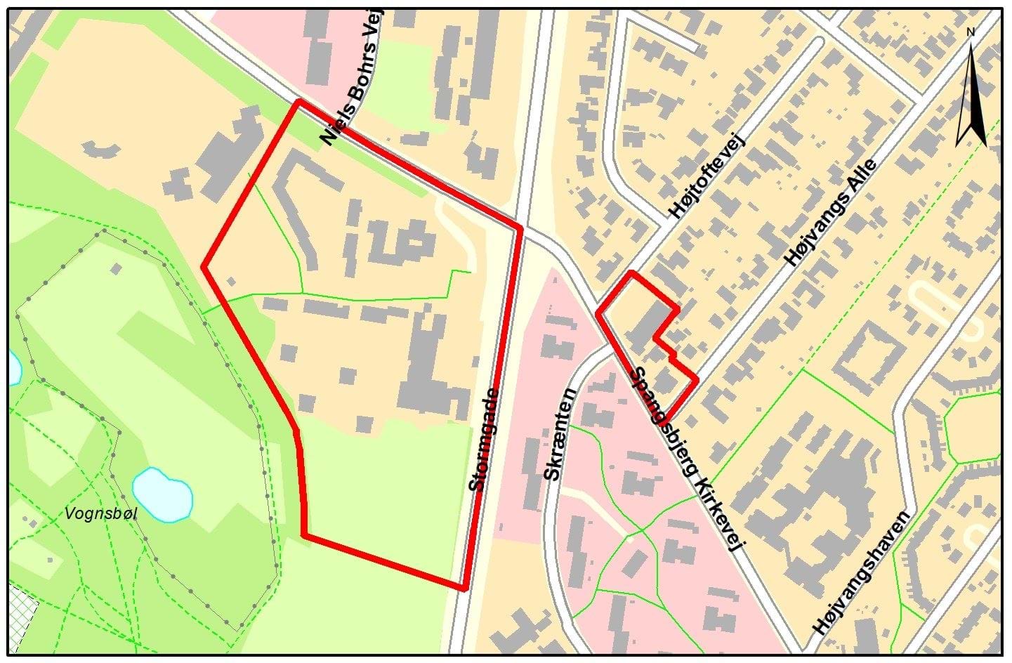 Som det ses på kortet omfatter ændringen et område på begge sider af krydset Stormgade/Spangsbjerg Kirkevej i Esbjerg.