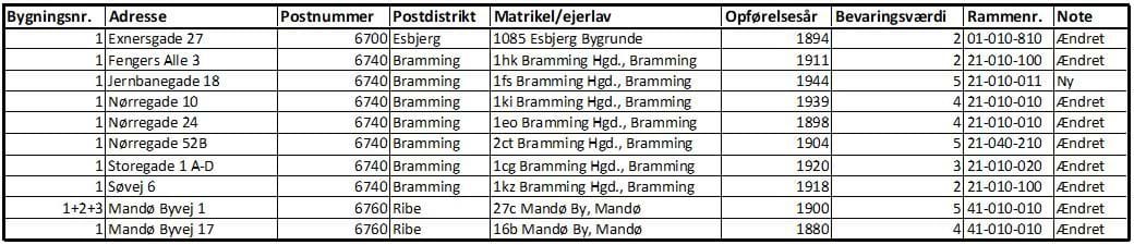 Ændringen vil give mulighed for ændringer i hovedstrukturens redegørelse samt genregistrering af 10 bevaringsværdige bygninger i Esbjerg kommune.