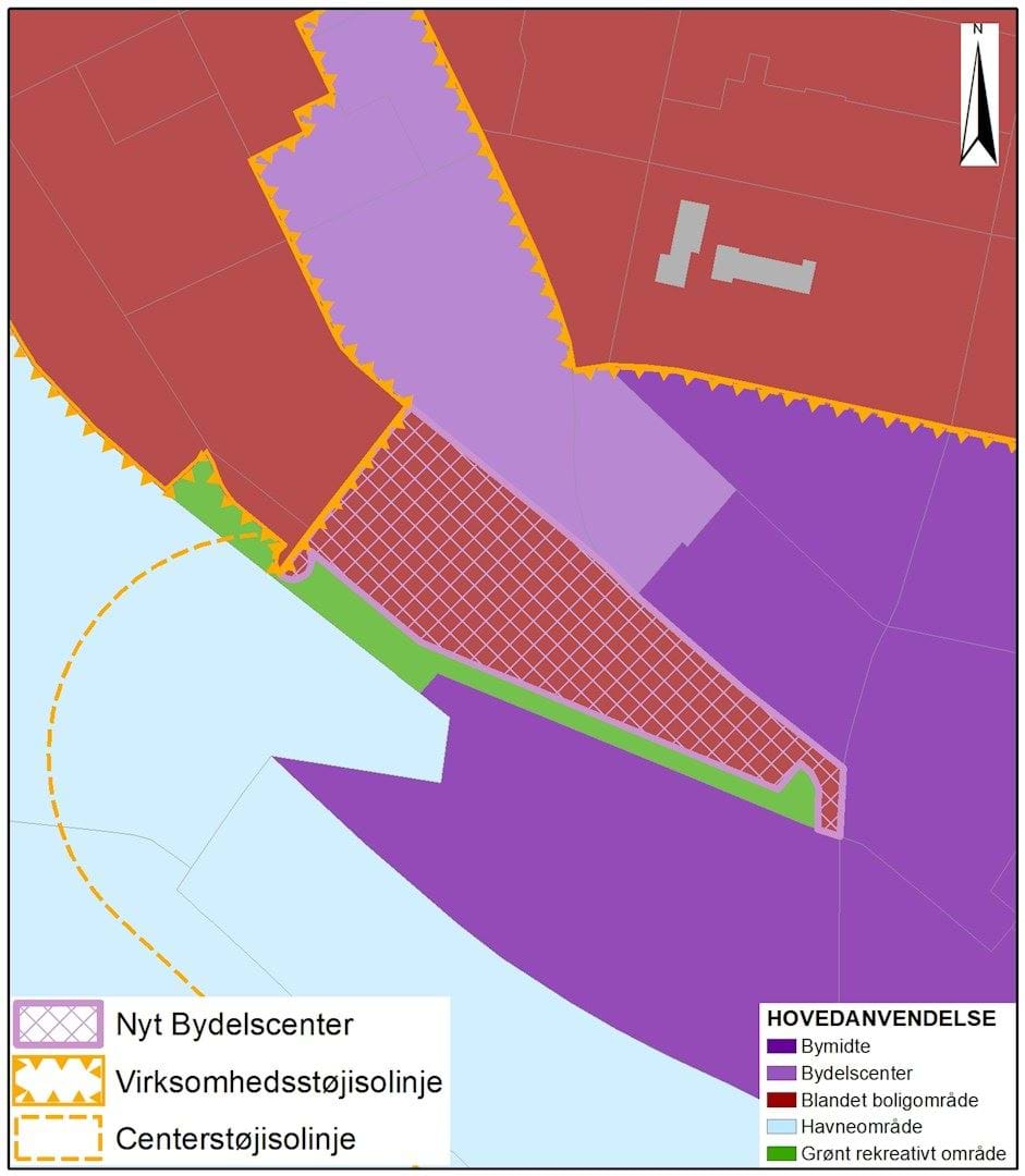 Som konsekvens af ændringen til bydelscenter ændres virksomheds- og centerstøjisolinjerne.