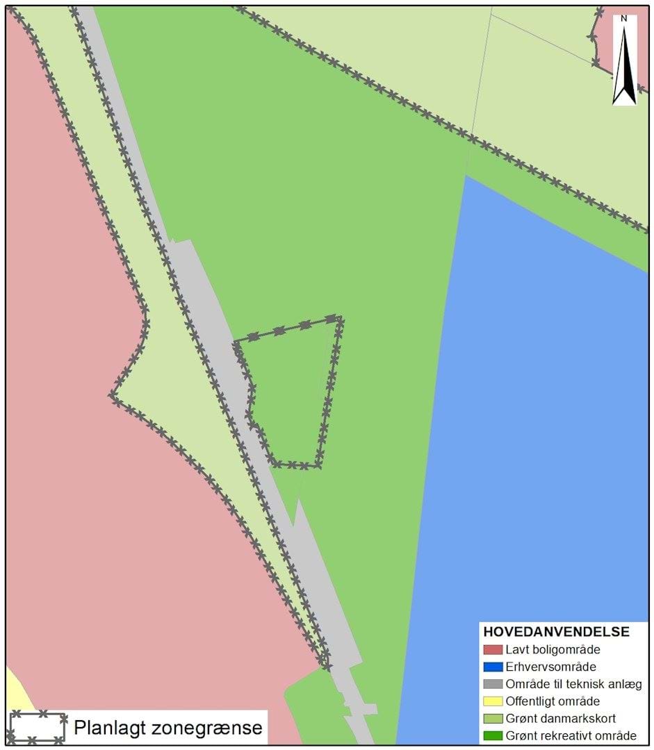 På kommuneplanens farvede hovedstrukturkort ses den ændrede Planlagte zonegrænse som her er illustreret på kortet.