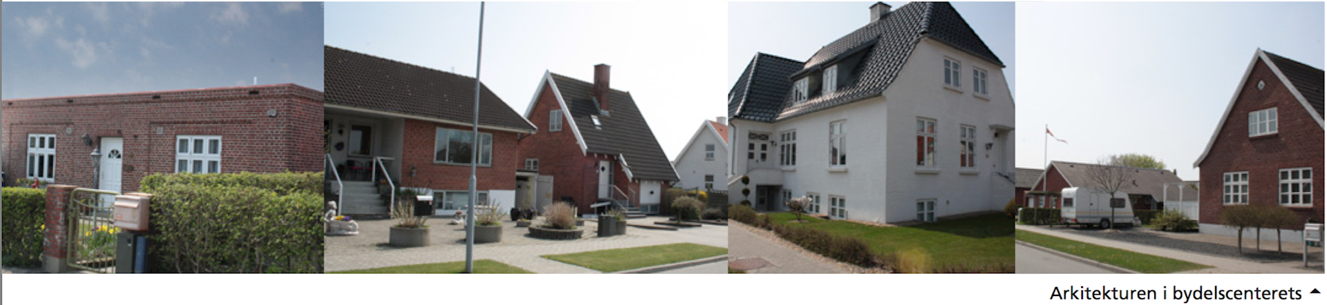 Centerområdet, der udspringer af den tidligere landsby, blev udbygget først, og her finder man både bedre byggeskik villaer, mindre byhuse samt parcelhuse bygget fra omkring 1920 og frem til 1950’erne. Skalaen er lille og området er indrettet, så det er let at færdes til fods eller på cykel.