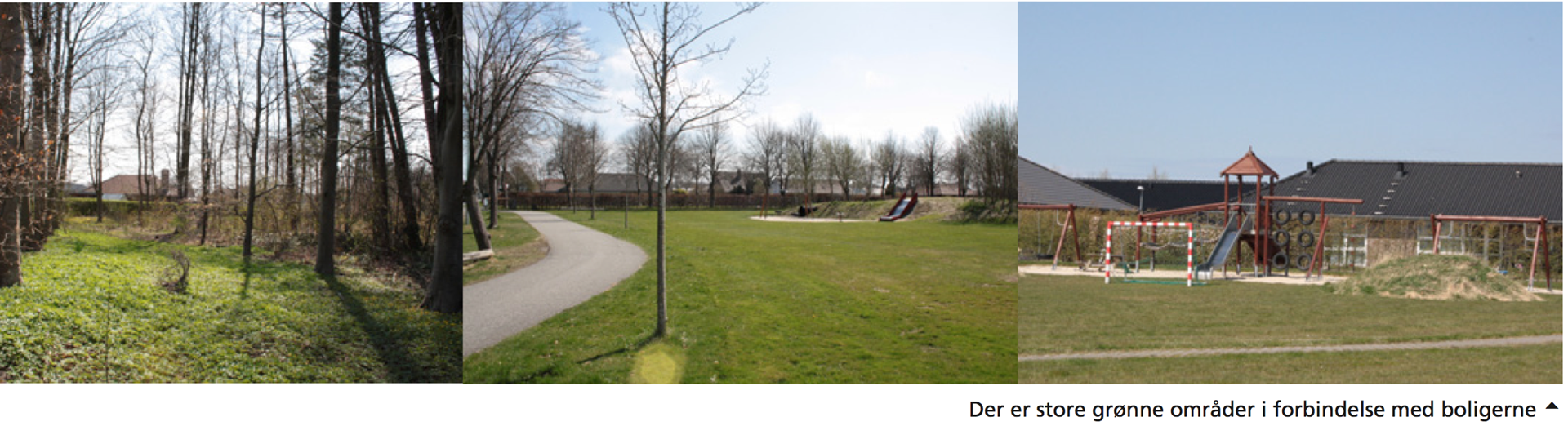 Området er åbent i sin struktur, og mange steder er der kort vej ud i det åbne landskab. Samtidig er der, i tilknytning til boligerne, både mange mindre fælles opholdsarealer samt private haver. I den nordlige del af området ligger Kaj Lykke Golfklubs bane, en grøn bane i smuk natur hvor Bramming Å og Sneum Å mødes.