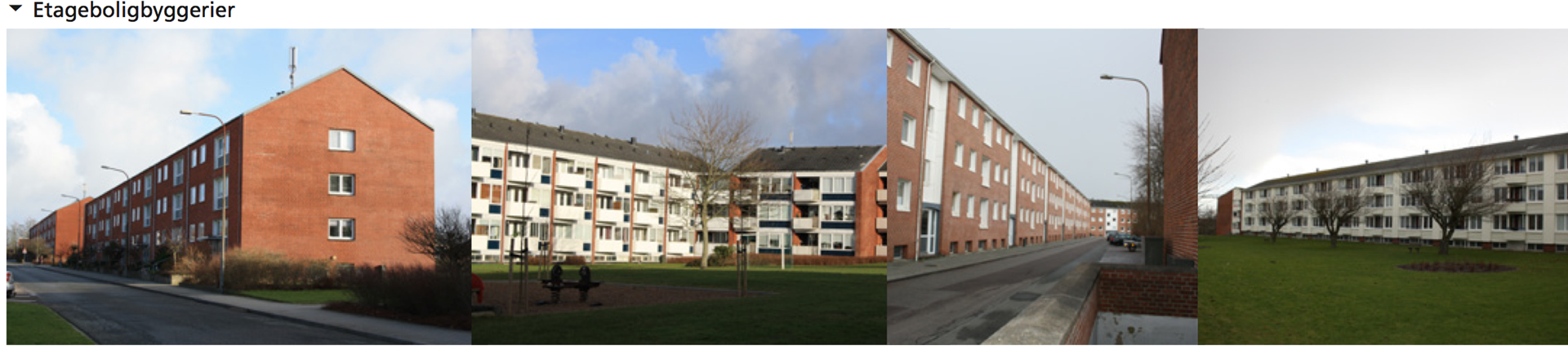 Endelig er der de større planlagte boligkomplekser både etage- og rækkehuse som blev bygget fra 1950erne og 20 år frem. Bebyggelserne fremstår som arkitektoniske helheder og er meget homogene i deres udtryk. Dette står i stor kontrast til de omkringliggende villakvarterer.