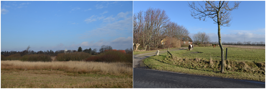 For enden af de lavtliggende enge omkring Hostrup Bæk ligger resterne af Breinholtgård og danner en smuk afslutning på landskabet. Området er nu golfbane.