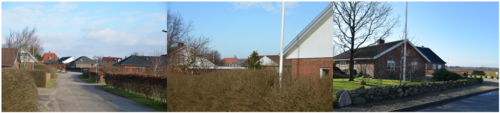 Byen er en udpræget vejlandsby, der er vokset langs en vej uden sideveje. Byen har henvendt sig til Hostrup bæk, som dannede et godt grundlag for landbrugsdrift.