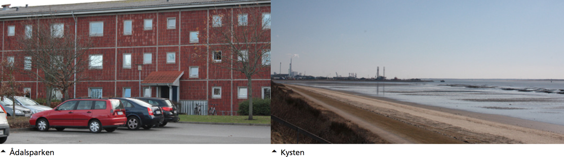 Områdets placering, med havet på vestsiden, gør at kysten fungerer som et stærkt pejlemærke når man bevæger sig i området. Derudover er der kun en enkelt bebyggelse, der skiller sig særligt ud - boligbyggeriet Ådalsparken, der med sit omfang og arkitektur står i kontrast til omgivelserne.